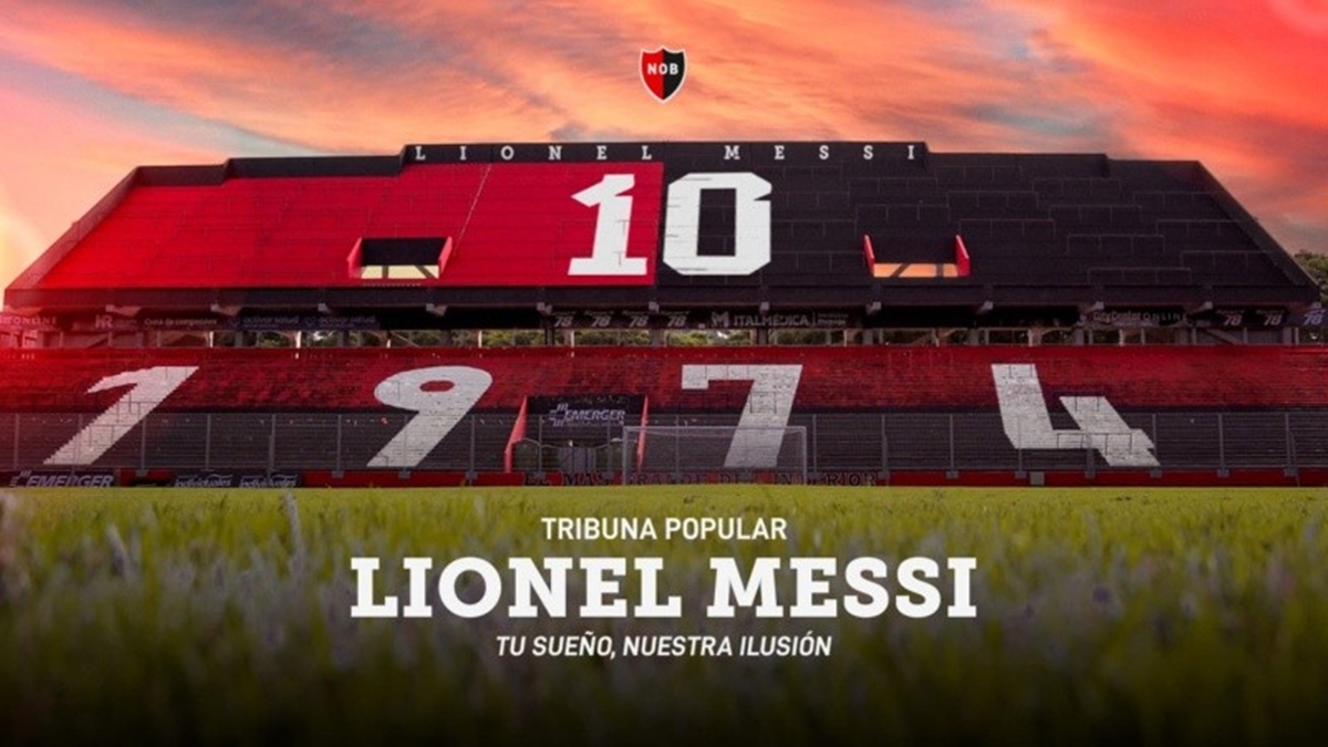 Newell’s confirmó que la nueva tribuna popular del Coloso, que da espaldas al Palomar del parque Independencia, llevará el nombre de Lionel Messi. El dato se había filtrado algunas horas antes mediante una foto que circuló mientras se pintaban las letras sobre la tribuna, pero este martes el club lo hizo oficial a través de un emotivo video publicado en sus redes sociales.