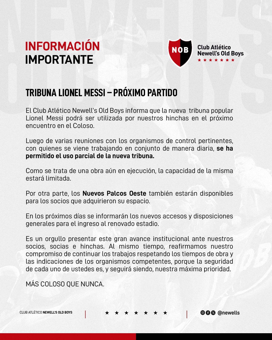 Desde la institución informaron que en los próximos días se detallarán los accesos y disposiciones generales para el ingreso a estas nuevas áreas del estadio.