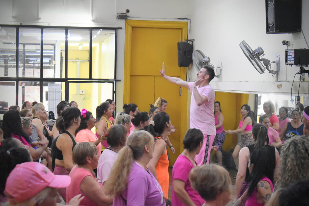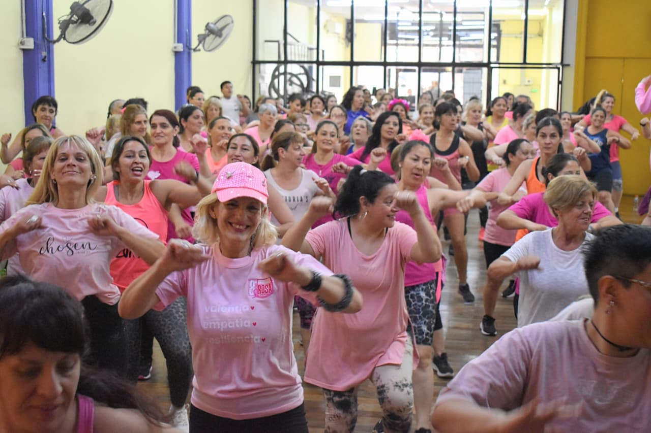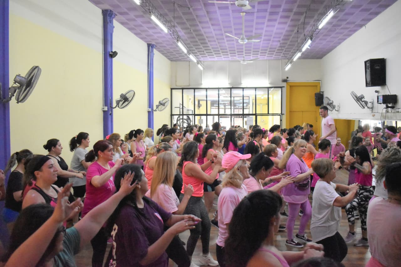 Con amplia convocatoria, la iniciativa del gimnasio Amici apuntó a promover la lucha contra el cáncer de mama y colaborar con la Asociación Chicos Rosario