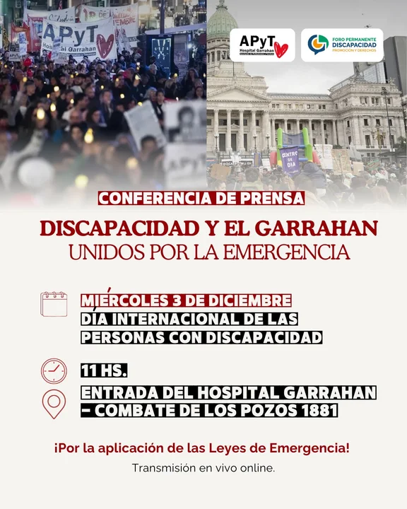Este miércoles, además, coincide con el Día Internacional por los Derechos de las Personas con Discapacidad y diversas organizaciones del colectivo se sumarán a la concentración bajo la consigna “contra todo ajuste sobre nuestros cuerpos y existencias” y con el apoyo de los trabajadores del Hospital Garrahan, que también realizar su propio reclamo.