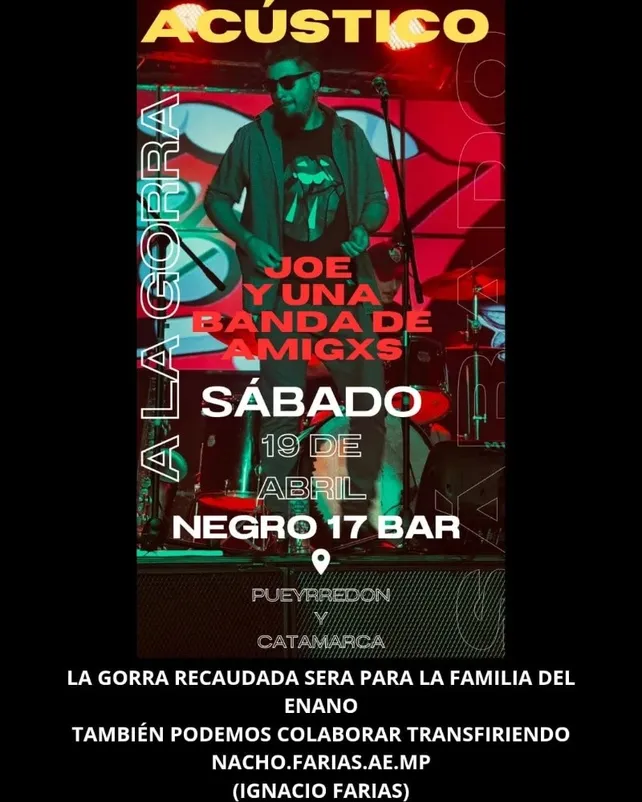 Como parte de la campaña, amigos de Fernando organizaron un recital solidario que se llevará a cabo el próximo sábado en un bar ubicado en Pueyrredón y Catamarca. El evento busca reunir fondos a través de contribuciones “a la gorra”, y todo lo recaudado será destinado a cubrir los gastos de traslado.