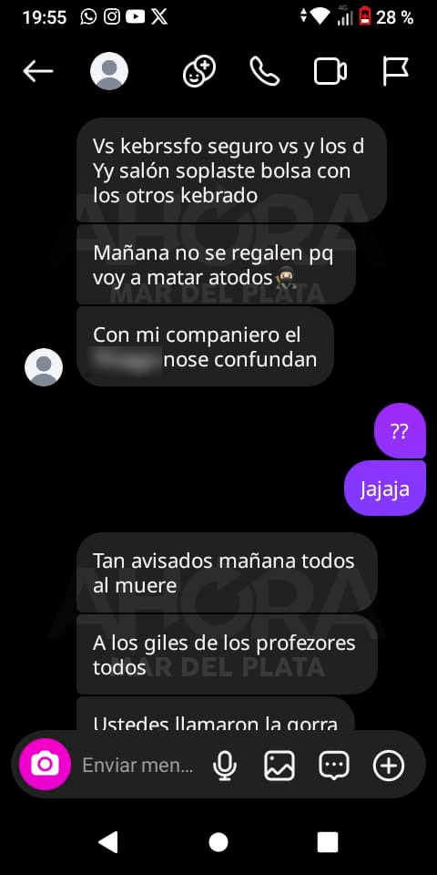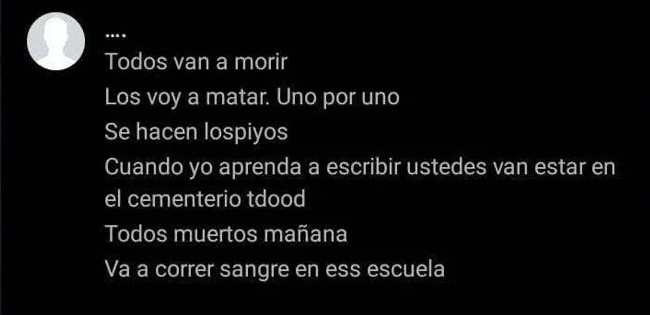 “Todos van a morir. Los voy a matar. Uno por uno”, dice uno de los mensajes que recibieron los menores.
