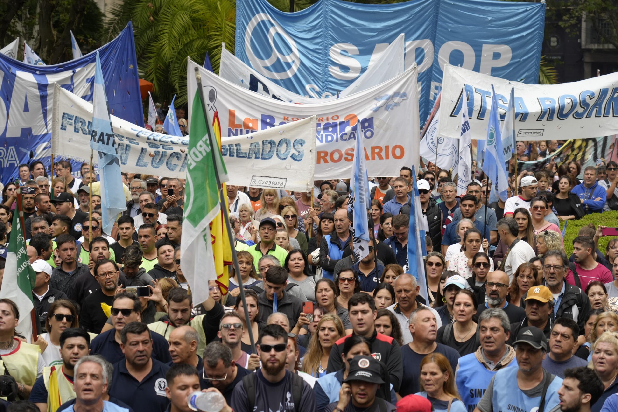 Paro general: fuerte movilización sindical en el centro de Rosario contra el ajuste de Milei