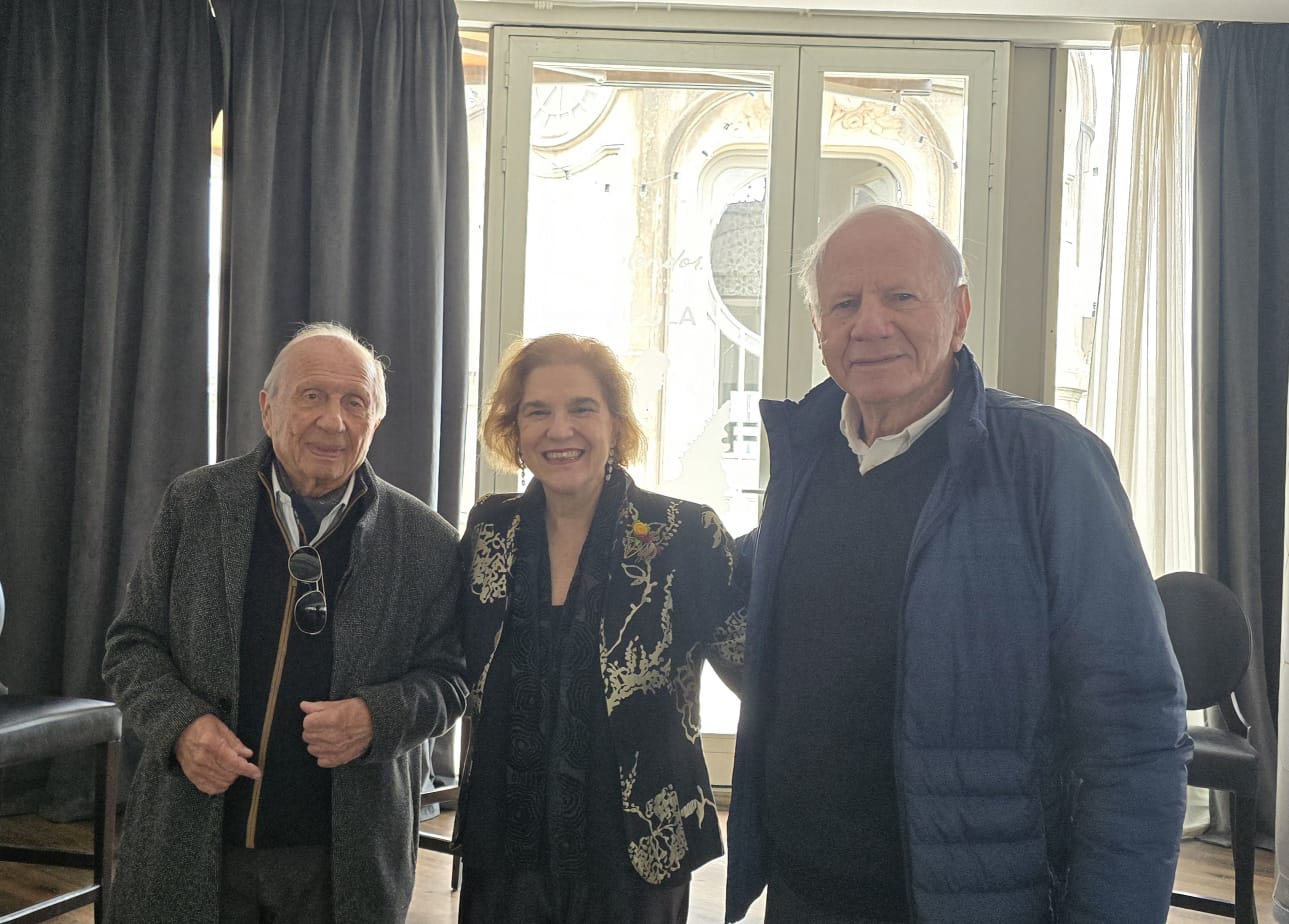 Pilar Rahola con el presidente del Centro Natan Gesang y vicepresidente, Rubén Bercovich y Edgardo Berman respectivamente