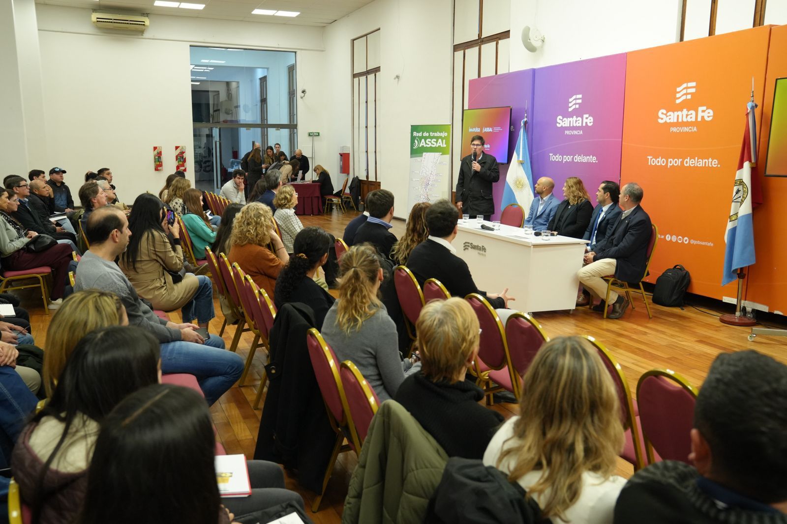Los cursos fueron presentados en la Sala Rodolfo Walsh de la sede de Gobierno en Rosario, y contó con la participación de la ministra de Salud, Silvia Ciancio; el ministro de Trabajo, Roald Báscolo; el ministro de Desarrollo Productivo, Gustavo Puccini; el ministro de Educación, José Goity; el secretario de Assal, Eduardo Elizalde; y productores de distintas regiones de la provincia, entre otros.