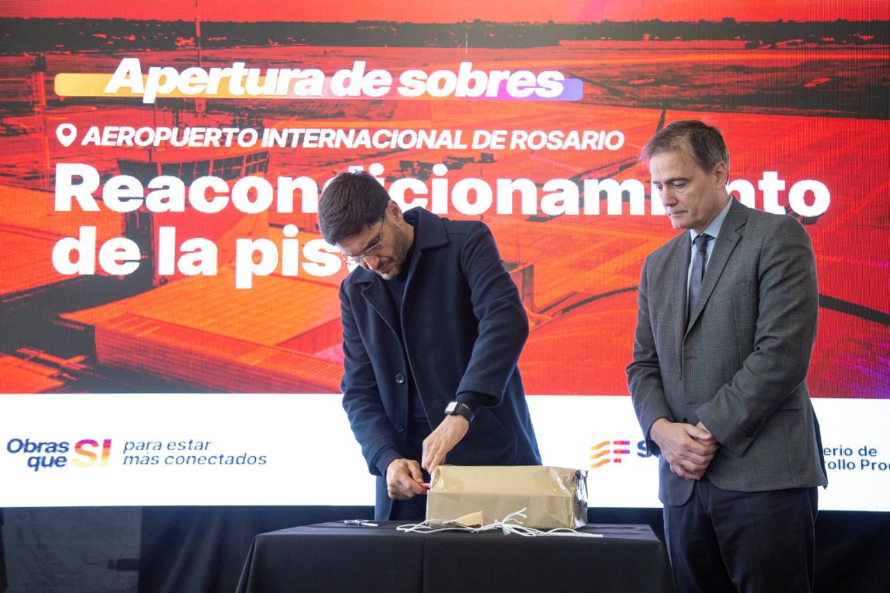 El gobernador encabezó la apertura de ofertas para la renovación integral de la pista del Aeropuerto Internacional Rosario. Se presentaron tres propuestas