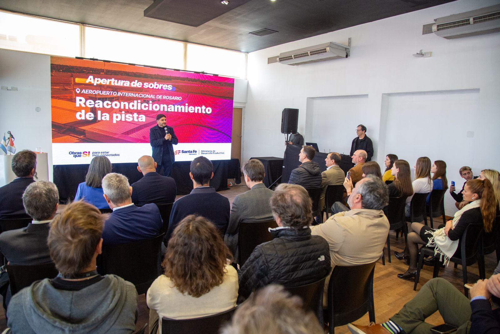 Del acto participaron el ministro de Desarrollo Productivo, Gustavo Puccini; la secretaria de Transporte y Logística, Mónica Alvarado; el presidente del directorio del aeropuerto, Esteban Breto; el gerente general, Juan Pío Drovetta; el presidente de la Cámara Argentina de la Construcción, Mariano Schor; y representantes de las tres firmas oferentes: Néstor Julio Guerechet S.A. ($45.695 millones), Obring S.A. ($36.924 millones) y Vial Agro S.A. ($43.469 millones).