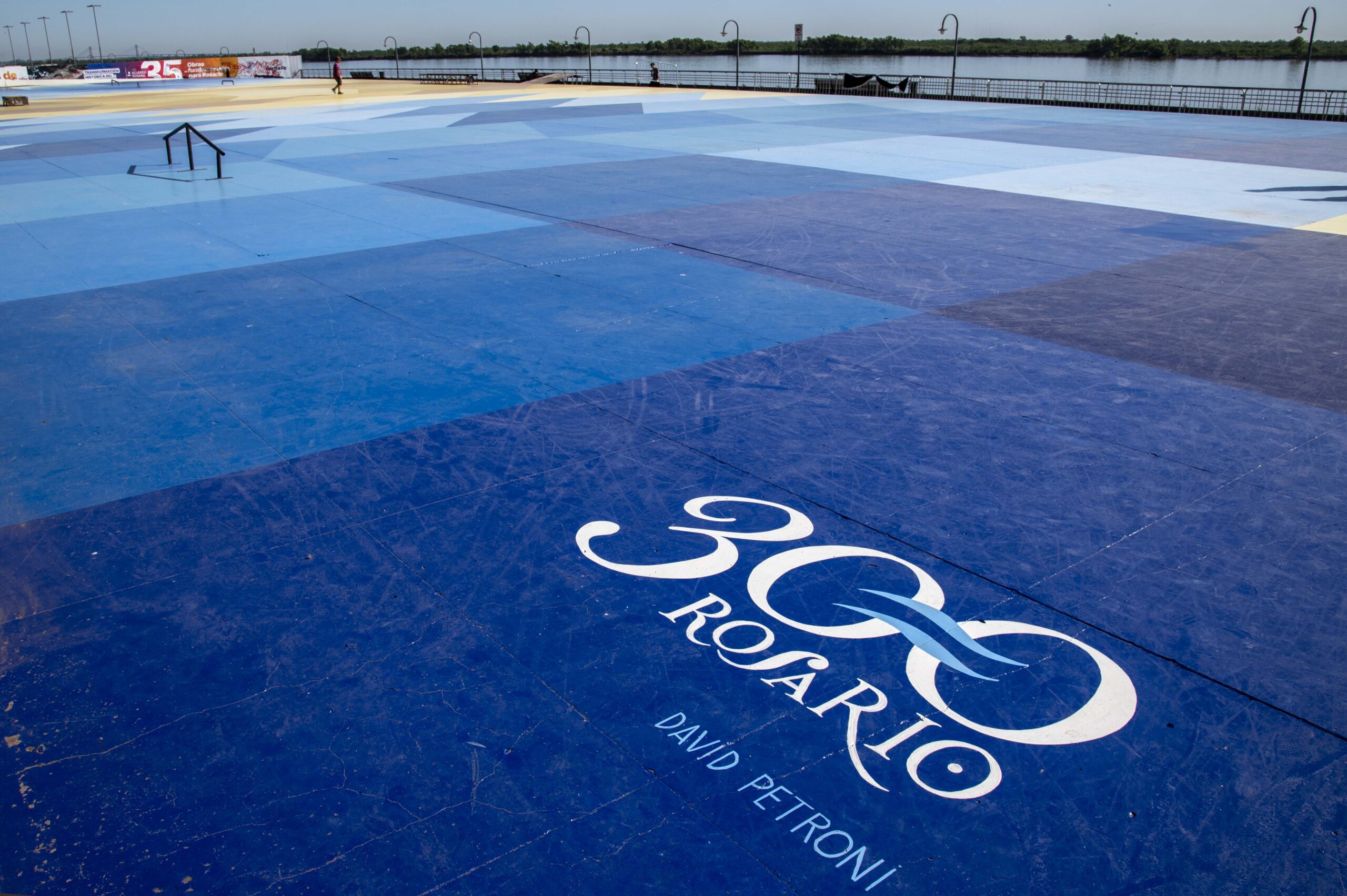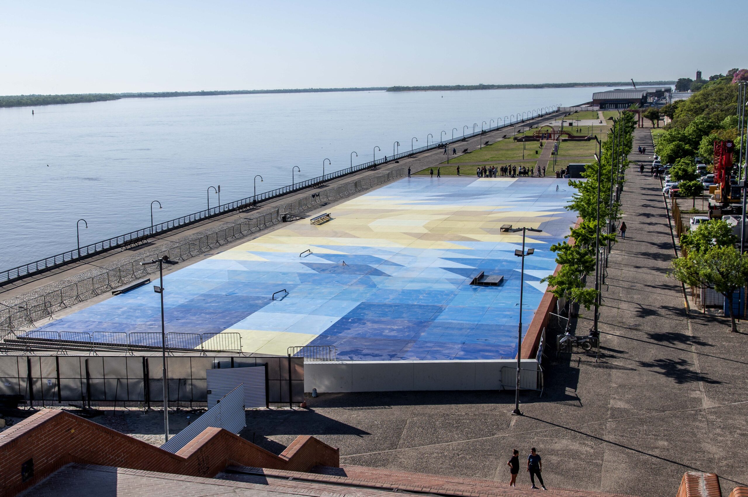 «La gente se va a encontrar con un mural geométrico abstracto, que representa, de alguna manera, desde lo cromático, los colores de la bandera argentina. Y no solamente eso, porque también tiene como cierto juego óptico del espacio, con algunas formas que simulan ciertas ilusiones desde diferentes puntos de la ciudad. No solamente desde donde se habita el mural, que es acá, de los chicos que van a venir a hacer skate, con los rollers, sino también desde las escaleras, desde los edificios. Dialoga un poco también con eso, con el paisaje y con la ciudad», explicó su autor, David Petroni.