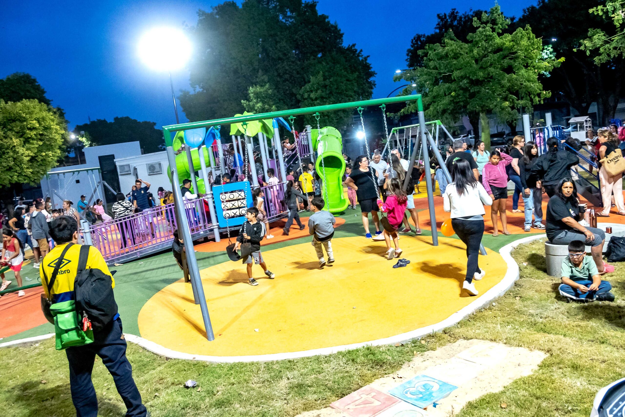 La revitalización abarcó tareas de reacondicionamiento en el playón polideportivo existente, donde se desplegó un cerco parapelotas, y también se repararon pisos, veredas y rampas. Asimismo, en la zona de juegos se ejecutó un piso de goma antigolpes y se dispuso un mangrullo integrador de gran porte, con juegos y atractivas propuestas para la primera infancia.