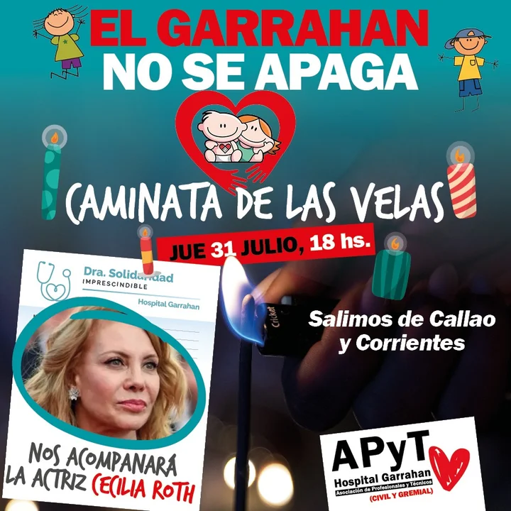 Trabajadores del Hospital Garrahan realizarán este jueves en el microcentro de la Ciudad, la “Caminata de las Velas” bajo la consigna “el Garrahan no se apaga”, donde estarán presentes todo el personal médico y no médico de la institución, familiares de pacientes y artistas. El acto cerrará con la lectura de una “carta a la comunidad” por parte de la actriz Cecilia Roth.