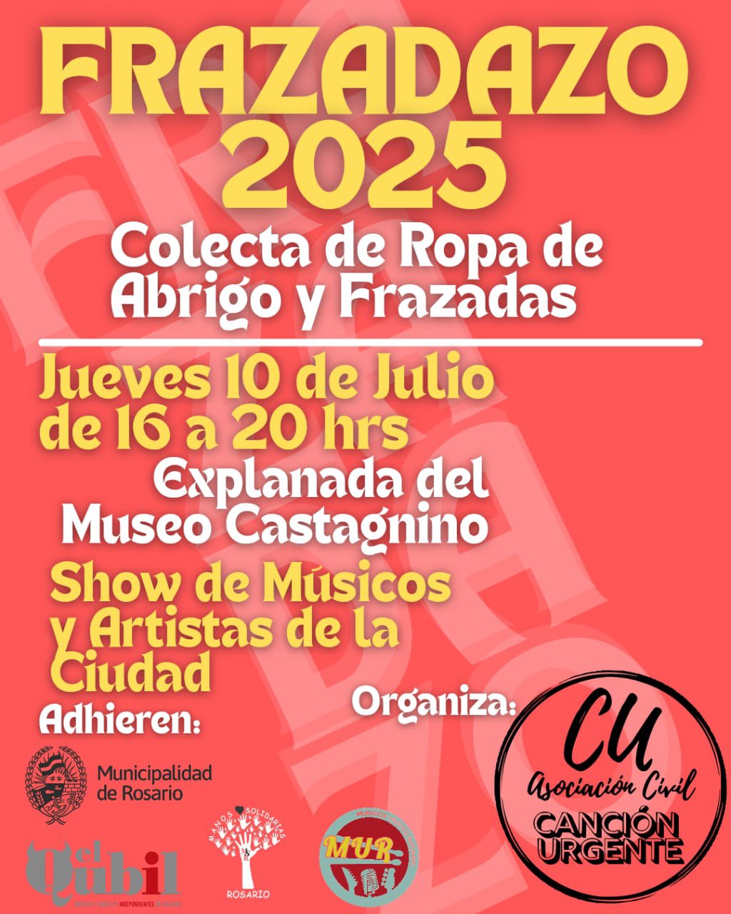 La explanada del Museo de Bellas Artes Juan B. Castagnino, en el cruce de Oroño y Pellegrini, será sede este jueves, desde las 16, de una nueva edición del “Frazadazo”, un encuentro solidario que tiene como objetivo recolectar ropa de abrigo y mantas que serán destinadas a personas que estén situación de calle.