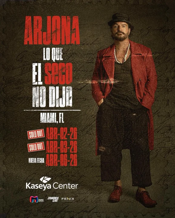 Ricardo Arjona, el guatemalteco que causa furor con su gira “Lo que el seco no dijo”, sumó una nueva fecha en Miami tras haber realizado dos sold out en el Kaseya Center y así llega una nueva edición debido a la alta demanda del público.