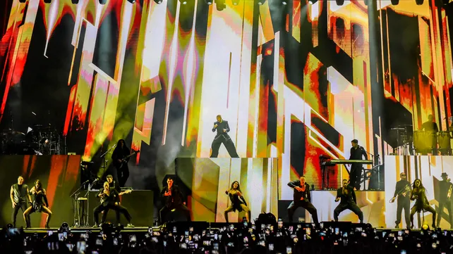 El show también tuvo su costado más íntimo, con baladas como “Vuelve”, “Tal vez” y “Fuego de noche, nieve de día”, que generaron uno de los momentos más emotivos de la noche. Sin embargo, la calma fue pasajera: rápidamente el recital volvió a convertirse en una fiesta con temas como “Mordidita” y “Vente pa’ ca”.