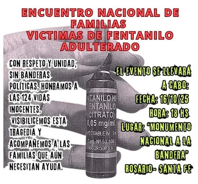 Este jueves 16 de octubre, desde las 18, Rosario será escenario de la primera movilización de familiares de víctimas del fentanilo contaminado, una tragedia sanitaria que dejó al menos 30 fallecidos en la ciudad. La convocatoria será en el Monumento Nacional a la Bandera y está enmarcada en el “Encuentro Nacional de Familias Víctimas de Fentanilo Contaminado”.