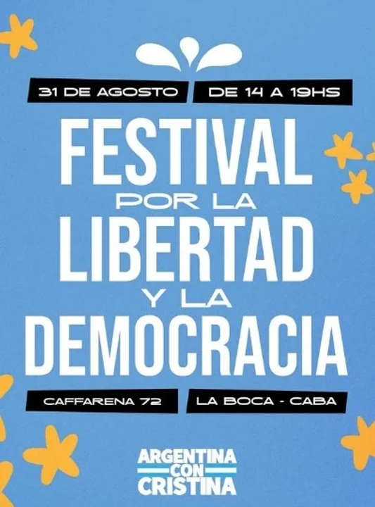 El colectivo ‘Argentina con Cristina’ realizará un nuevo festival “por la libertad y la democracia” en apoyo a la ex presidenta de la Nación y actual titular del Partido Justicialista (PJ), Cristina Kirchner.