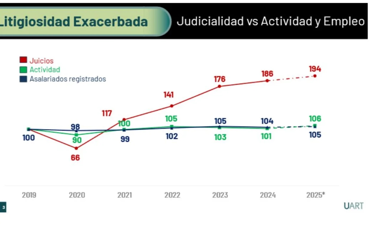 “La situación es absurda. A pesar de las mejoras del sistema, la litigiosidad sigue escalando sin lógica ni fundamento”, afirmó Mara Bettiol, presidenta de la UART, quien remarcó que ni las empresas ni el sistema pueden absorber este nivel de conflictividad.