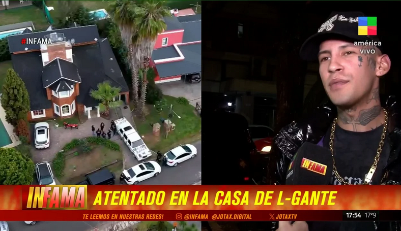 Este domingo en Infama (América TV), Laura Ubfal lanzó una información que sacudió el mundo del espectáculo cuando reveló que L-Gante habría sido víctima de un presunto atentado en su domicilio ubicado en un barrio privado de Canning.