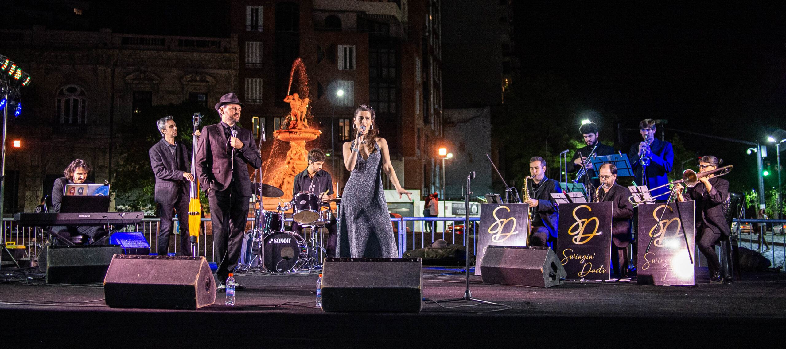 Hernán Biancardi da detalles del origen de este proyecto artístico: “Ambos venimos desarrollando, desde hace varios años y de manera individual, distintos proyectos musicales dentro de este género. Hernán, con una trayectoria de más de 20 años, lidera la Rock and Rule Swing Band, una big band de neoswing en la que se desempeña como cantante, pianista, arreglador y director. Yo, por mi parte, he llevado adelante diversas formaciones solistas con repertorios que abarcan blues, jazz tradicional y jazz manouche. En 2023 surge la idea de unir caminos y crear un repertorio de duetos acompañados por orquesta. Así nace Swingin’ Duets, que debutó en agosto de ese mismo año en la Plataforma Lavardén”.