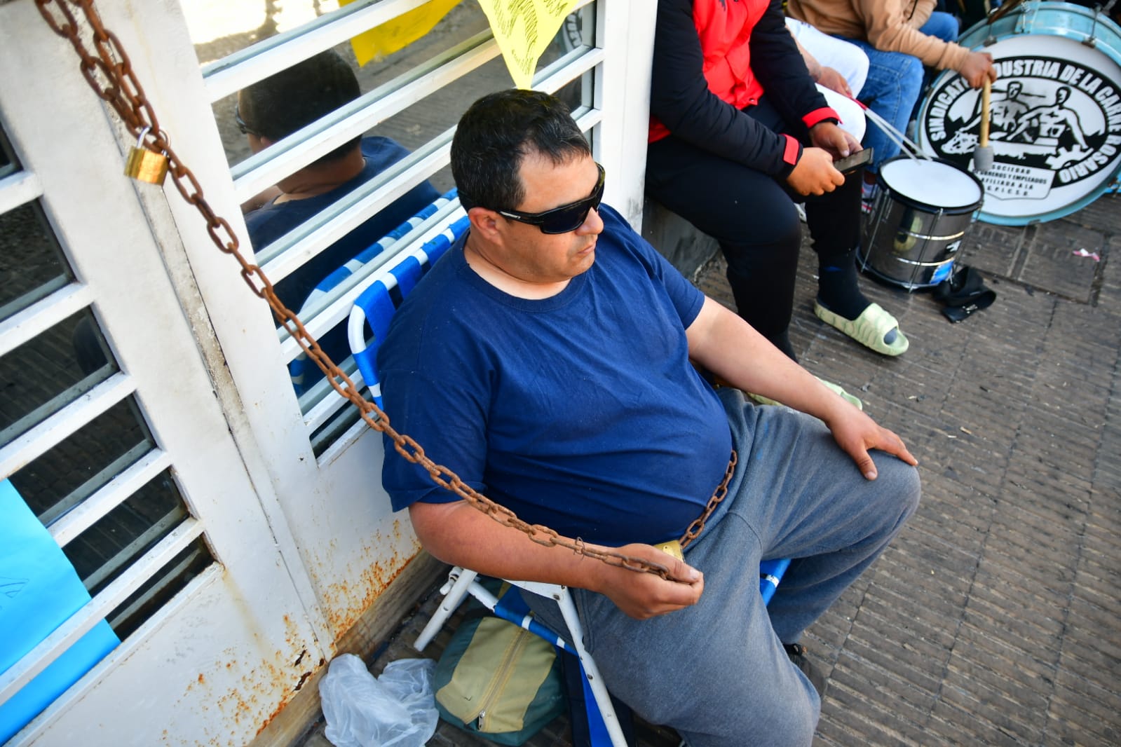 Crece la tensión en el frigorífico Euro de Villa Gobernador Gálvez. Este lunes, un trabajador se encadenó en la entrada del establecimiento para reclamar por la situación de 47 operarios que siguen sin respuestas de la empresa luego del vencimiento de la conciliación obligatoria.