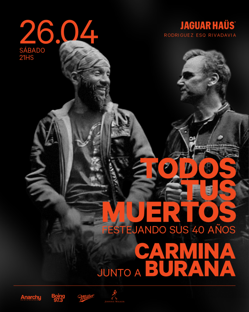 «Todos tus muertos» regresa a la ciudad para celebrar su 40° aniversario este sábado 26 desde las 21 en JaguarHaüs, ubicado en Rodríguez 198 bis. Será un show inolvidable y un encuentro de varias generaciones que contará con la presencia de Carmina Burana, histórica banda de la región.