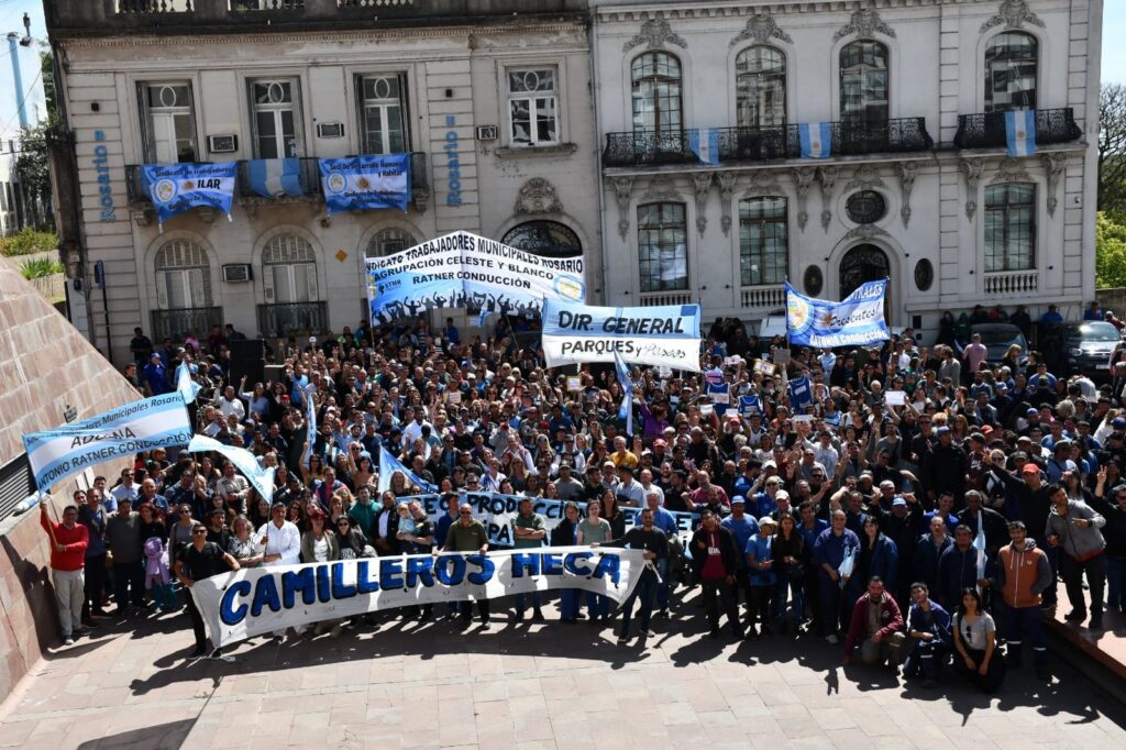 El Sindicato de Trabajadores Municipales de Rosario llevó a cabo este jueves una multitudinaria asamblea frente a la sede de la Secretaría de Desarrollo Humano y Hábitat local. La protesta fue a centímetros de la propia Municipalidad para denunciar la precarización de gran parte del personal que presta servicios en las instituciones del área.