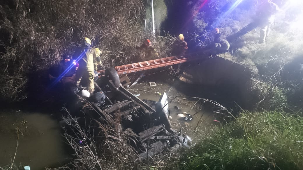 El accidente ocurrió alrededor en las primeras horas de la madrugada de este domingo, cuando una camioneta S-10 gris, en la que viajaba una familia desde Zavalla hacia la ciudad de Pérez, perdió el control en una curva y terminó volcando con sus ruedas hacia arriba. El vehículo quedó sumergido parcialmente en un canal con agua, lo que dificultó las tareas de rescate.