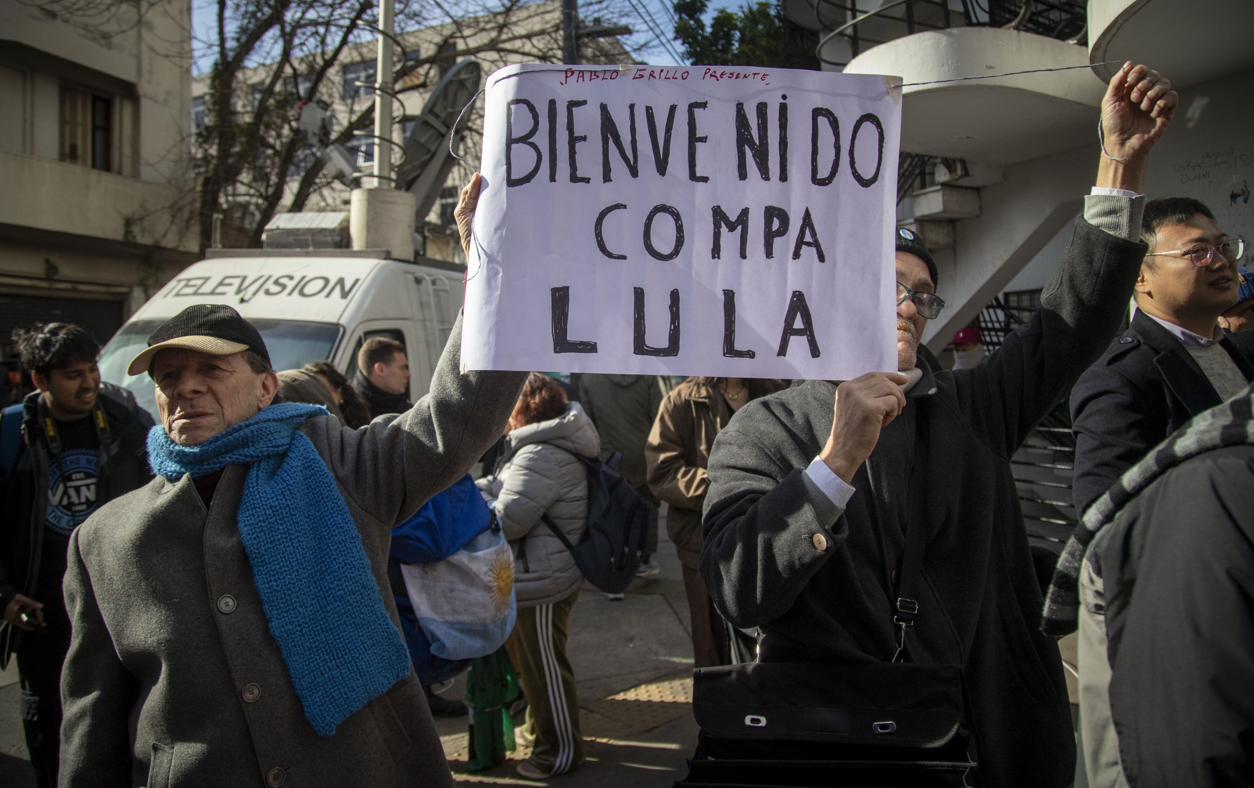 El titular del Tribunal Oral Federal 2, Jorge Gorini, autorizó el miércoles pasado y fuera del listado oficial, que Lula se reúna con Cristina Kirchner y remarcó el pedido de “no generar disturbios” en el barrio; si bien la cantidad de personas es menor a la que hubo los primeros días de la detención de la presidenta del PJ Nacional, se hicieron presentes seguidores de ambos mandatarios, con carteles y banderas argentinas.