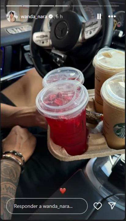 Aunque aún no confirmó la relación, las pistas son cada vez más evidentes. Todo comenzó con una postal desde el asiento del conductor de un lujoso Mercedes-Benz, en donde Migules sostiene una bandeja con bebidas frías. Wanda sumó un emoji de corazón rojo que, sutilmente, ocultaba la etiqueta de Migueles.