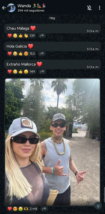 Tal fue el caso de esta mañana, cuando a las 5 AM de Argentina -10 AM de España-, la mediática publicó una sesión de fotografías en su canal de WhatsApp junto al cantante de cumbia RKT y 420.
